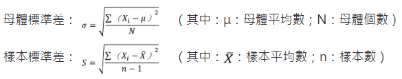圖一、母體及樣本平均值公式衡量數據的離散程度:標準差(Standard Deviation)