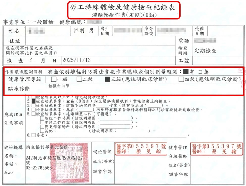 無論該輻射工作人員已離職或退休,雇主對於游離輻射工作人員每年之定期健檢報告,須完整保存 30 年,若未依規定保存,將依游離輻射防護法第四十四條第一項第九款規定處新臺幣五萬元以上二十五萬元以下罰鍰。